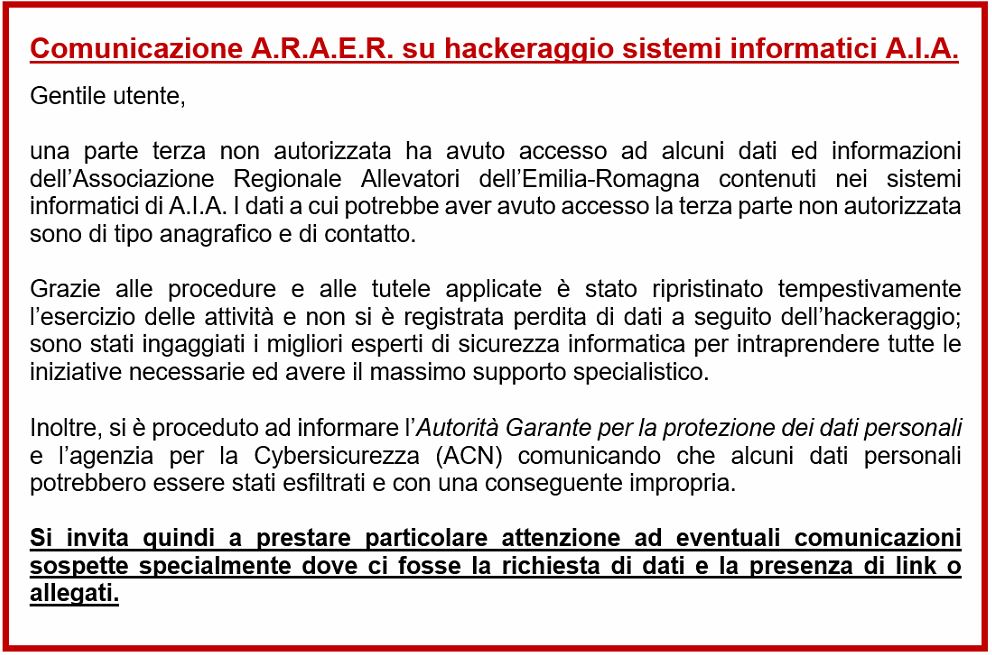 ARAER (Associazione Regionale Allevatori dell’Emilia Romagna), in virtù del protocollo siglato con l’Area Sanità Veterinaria della Regione Emilia Romagna ricoprirà un ruolo chiave di
